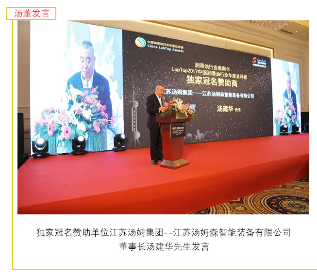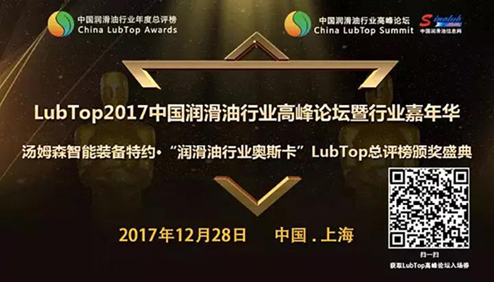 【喜訊】湯姆再次榮獲 LubTop2017中國潤滑油行業(yè)年度供應鏈金牌服務商獎!
