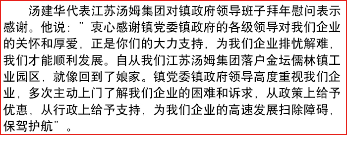 金壇區儒林鎮政府領導班子來湯姆集團拜年!