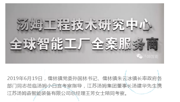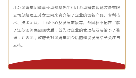 江蘇湯姆集團熱烈歡迎儒林鎮黨委孫國林書記等一行領導的蒞臨考察