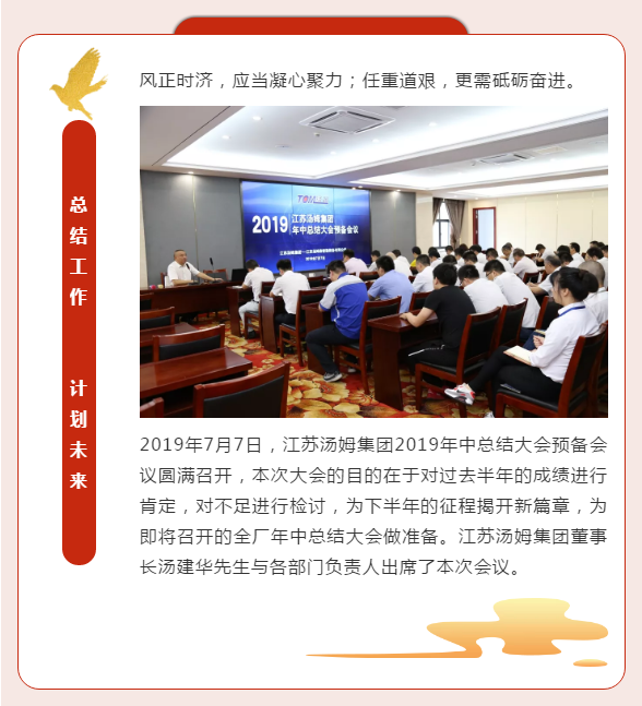 江蘇湯姆集團2019年中總結大會預備會議圓滿召開丨不忘初心,砥礪前行