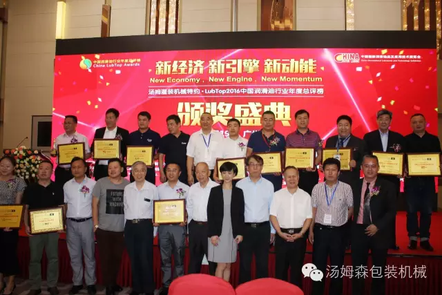 江蘇湯姆集團終榮膺服務獎——“LubTop2016年度行業供應鏈金牌服務商”獎。