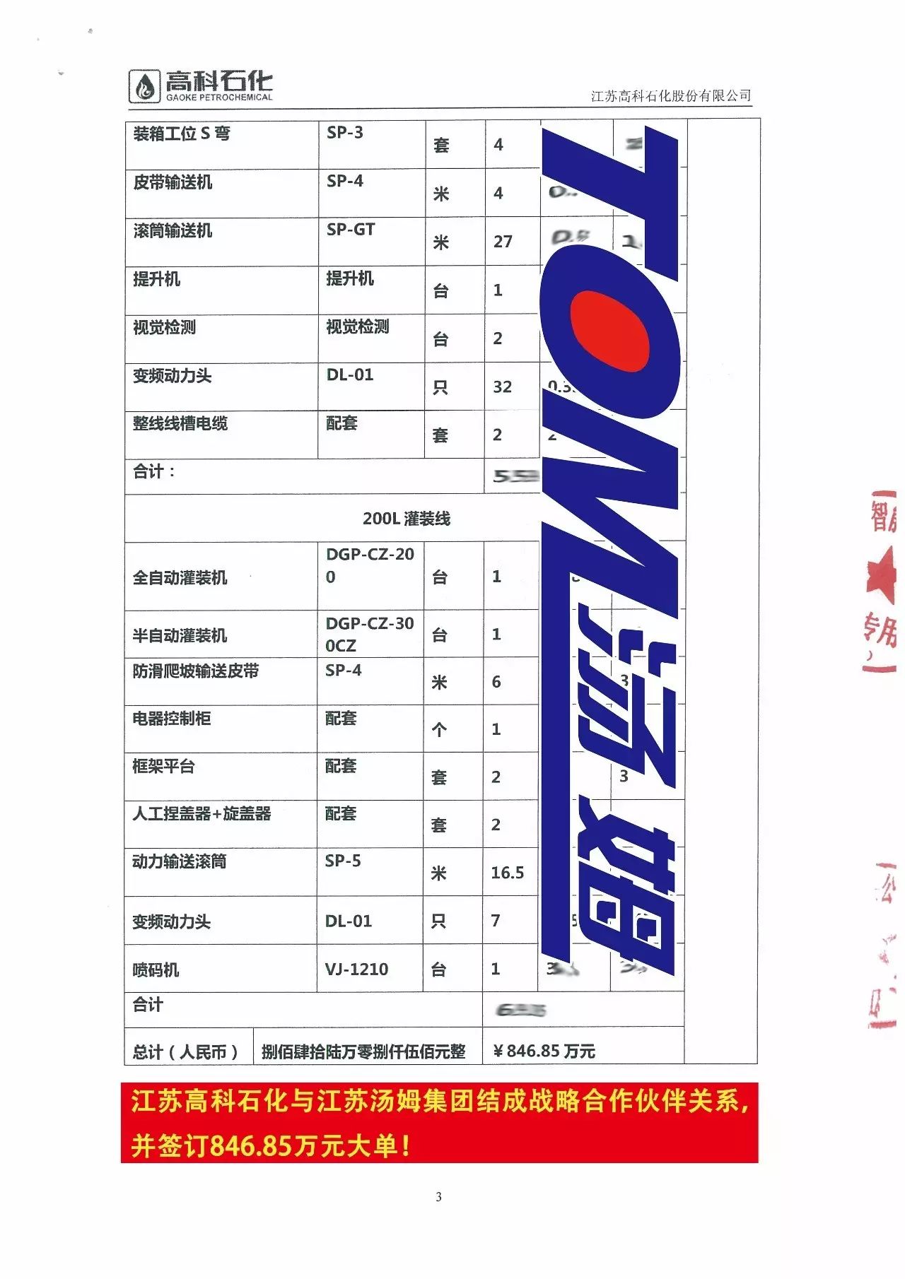 【重磅】江蘇高科石化與江蘇湯姆集團結成戰略合作同盟關系,并簽約800萬大單!強強聯合,組建戰略同盟,打造行業航母!