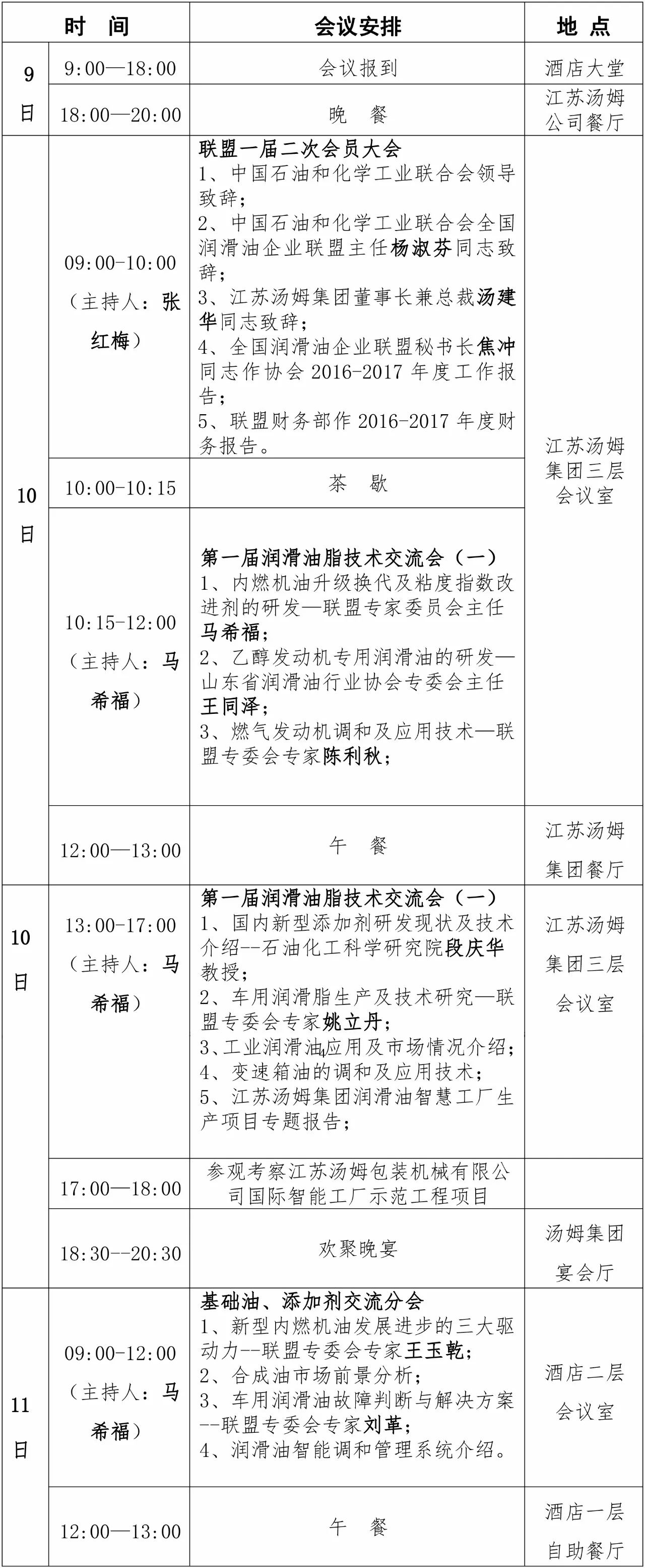 會議邀請丨江蘇湯姆集團協辦全國潤滑油企業聯盟一屆二次會員大會暨 第一屆潤滑油脂技術交流會