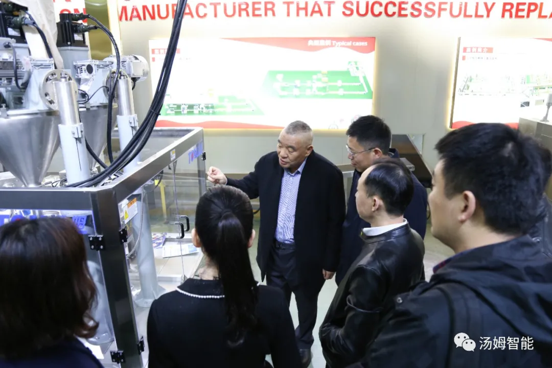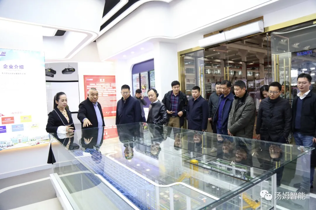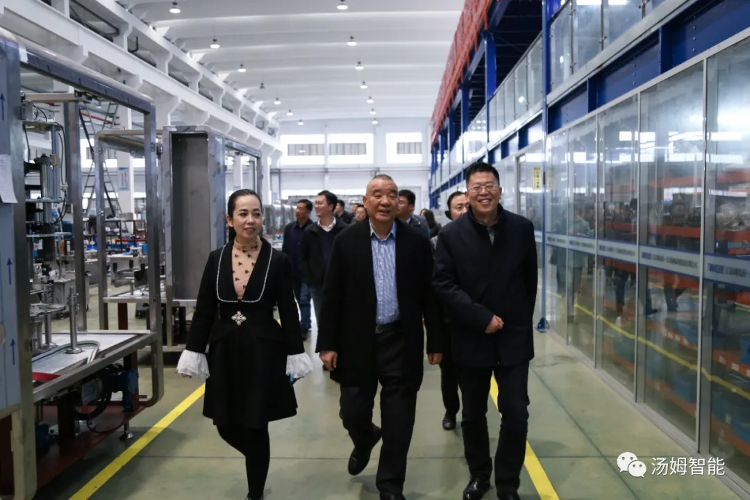 在江蘇湯姆集團(tuán)董事長湯建華,湯姆森總經(jīng)理王芳,集團(tuán)財(cái)務(wù)總監(jiān)吳芳的陪同下,陳區(qū)長一行參觀了湯姆集團(tuán)的科技展覽館、重點(diǎn)參觀了專利墻和榮譽(yù)墻,以及湯姆集團(tuán)的樣板車間和一期二期100畝生產(chǎn)基地。董事長湯建華向陳區(qū)長介紹了湯姆集團(tuán)的發(fā)展,重點(diǎn)闡述了在智能制造上面的科研、創(chuàng)新、以及在客戶現(xiàn)場的使用案例。