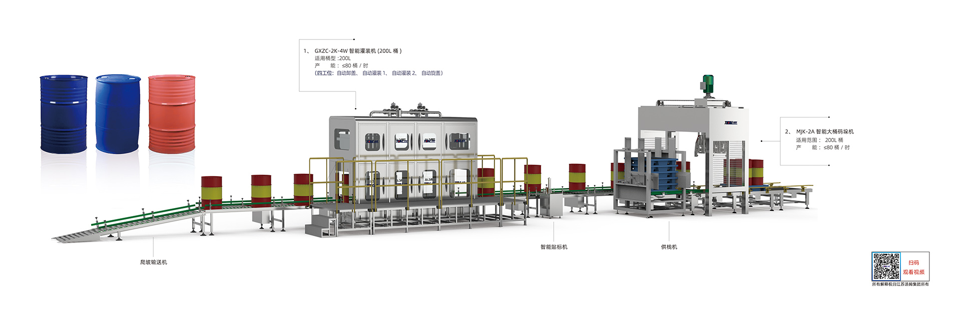 1、本線適用于農藥、化工200L桶包裝規格產品灌裝。